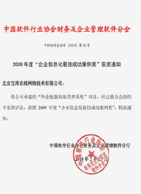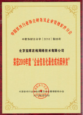 中国软件行业协会财务及企业管理软件分会2009年度 “企业信息化成功案例奖”