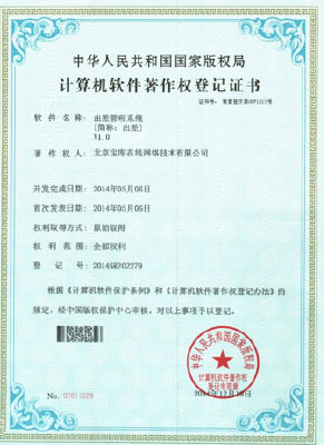 中华人民共和国国家版权局计算机软件著作权登记证书 (出差管理系统V1.0)