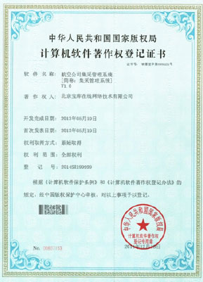 中华人民共和国国家版权局计算机软件著作权登记证书 (航空公司集采管理系统V1.0)